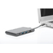 With the USB Type-C™ Universal Travel Docking Station from DIGITUS®, you always have the most important interfaces with you. The docking station extends your notebook by nine additional ports. It offers two video interfaces (HDMI and VGA). The highest possible supported resolution (HDMI): Brilliant UHD (4K2K/30Hz). In addition, it offers two USB 3.0 ports, one promises a charging function for mobile devices (BC 1.2) as well. Likewise, it offers two USB-C™ ports - 1x data transfer, 1x Power Delivery (PD 3.0). Your notebook can also be connected to the network by cable via the Gigabit Ethernet port. The whole thing is rounded off by two card readers (MicroSD, SDHC, SDXC / MMC). Due to the compact size, the low weight as well as the stowable connecting cable, the docking station is the perfect companion when out and about and when travelling.