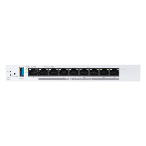 Power over Ethernet — 8 PoE ports capable of delivering up to 123 watts of power offer a convenient solution for powering various PoE-enabled devices
