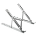 Reduce neck and eye strain with the Portable Ergonomic Laptop/Tablet Stand that puts your device in an optimal position for daily work. The adjustable design supports six different height options to deliver a comfortable angle for nearly any environment. Stylish and durable, the stand is made of high-quality aluminum with high heat reduction to help prevent your device from overheating. Compact and lightweight, the stand folds flat for easy portability and storage. A bonus grey pouch is also included for convenient carrying.