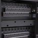Cable management in the front device section and separate rear power section easily organizes power supplies and routes cables to each device